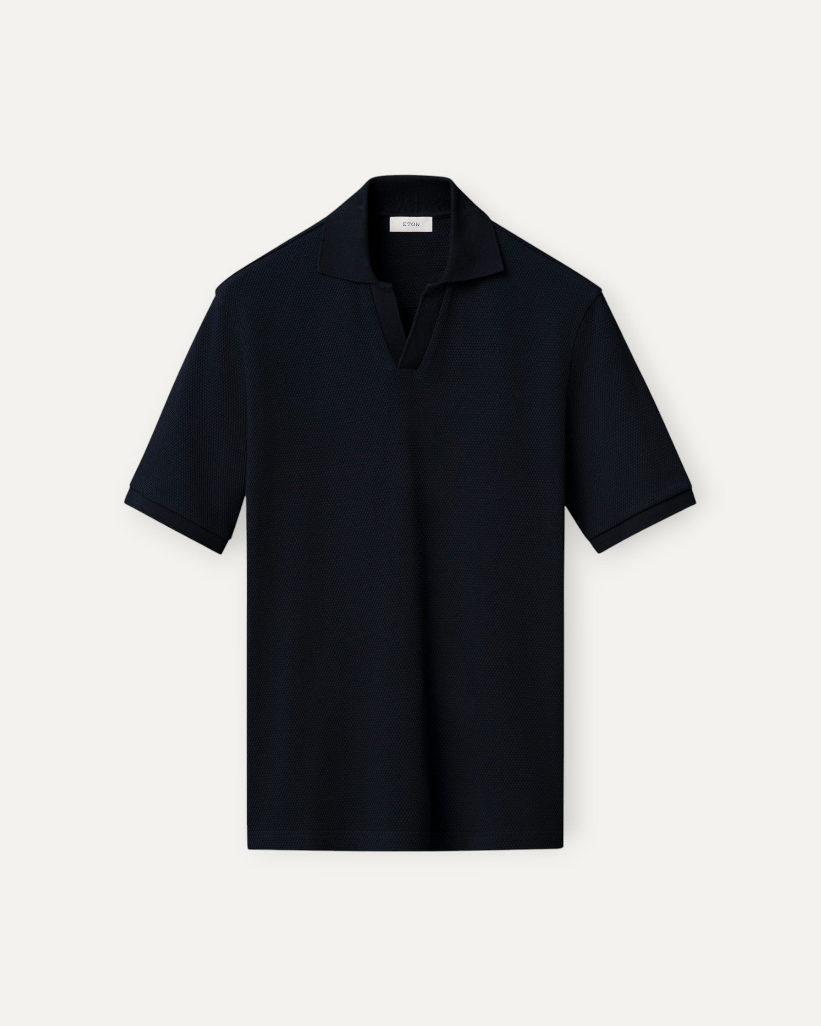 Waffle Open Collar Polo Shirt Navy Blue