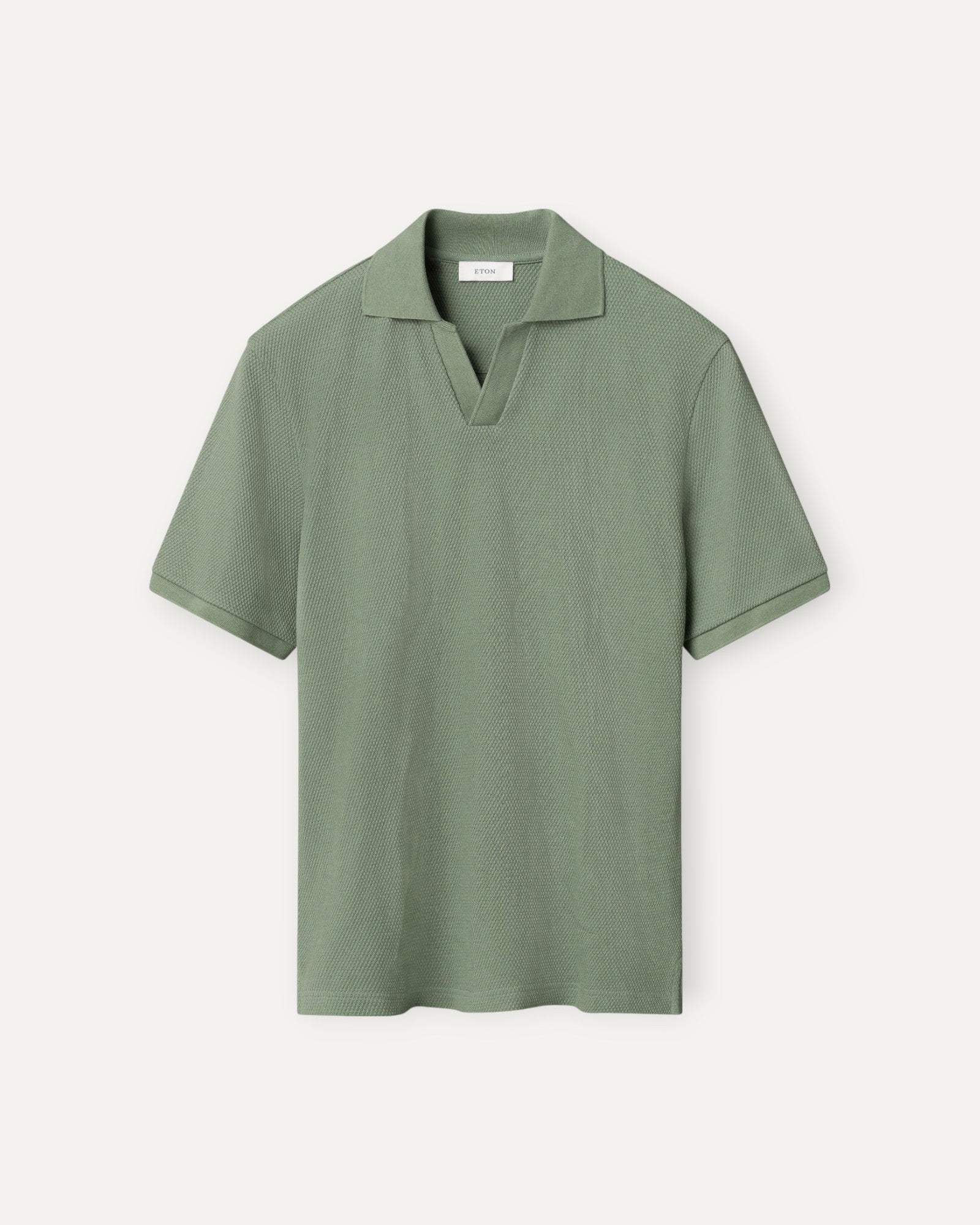 Waffle Open Collar Polo Shirt Mid Green