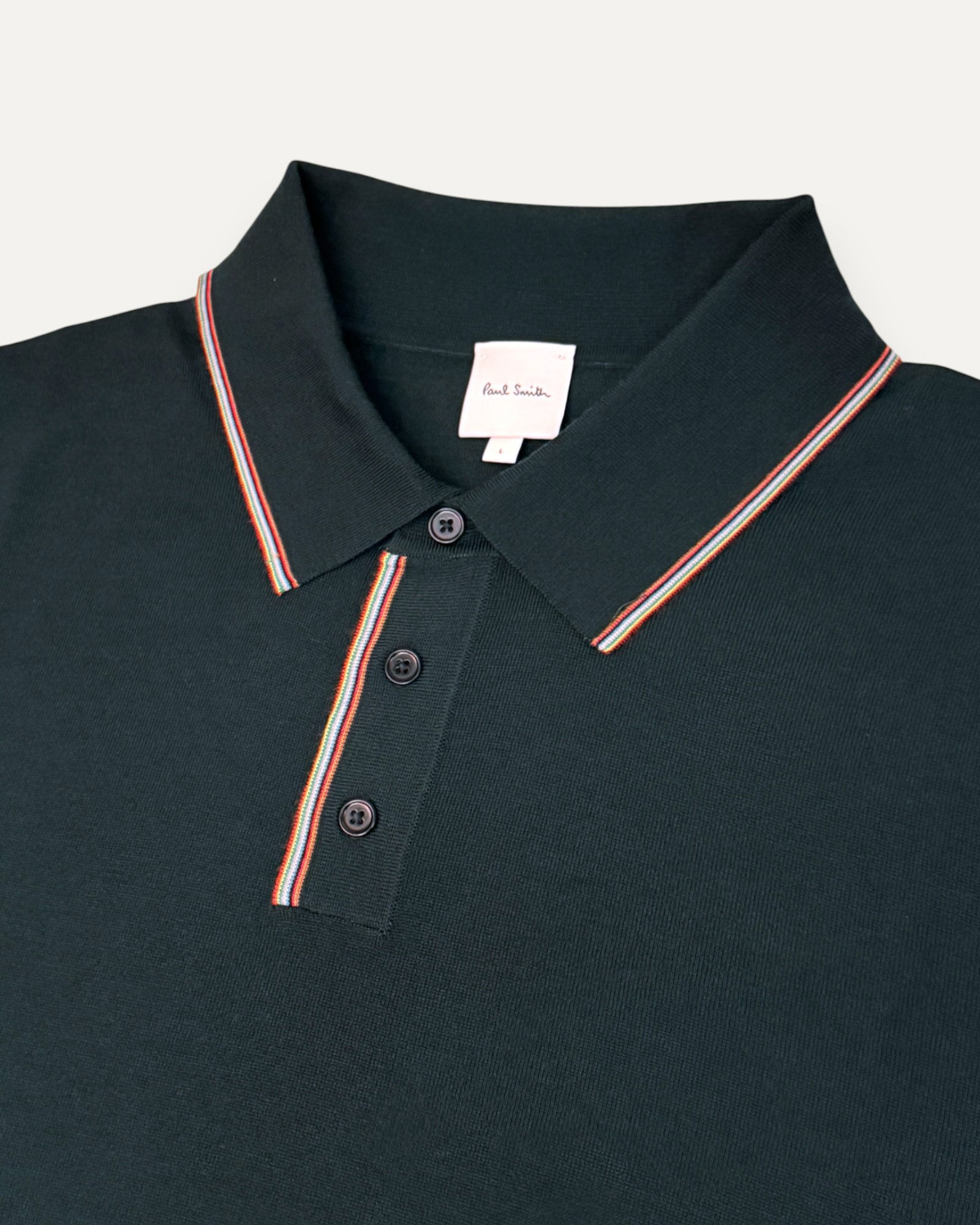 Merino Wool 'Signature Stripe' Knitted Polo Shirt Dark Green