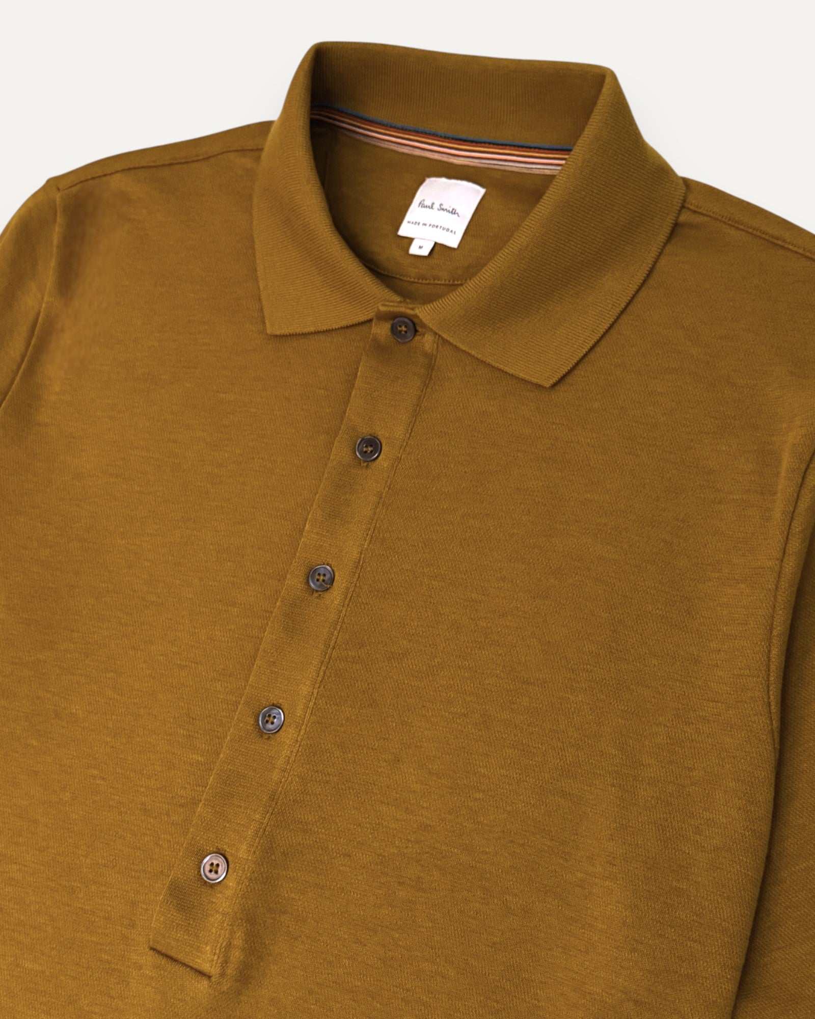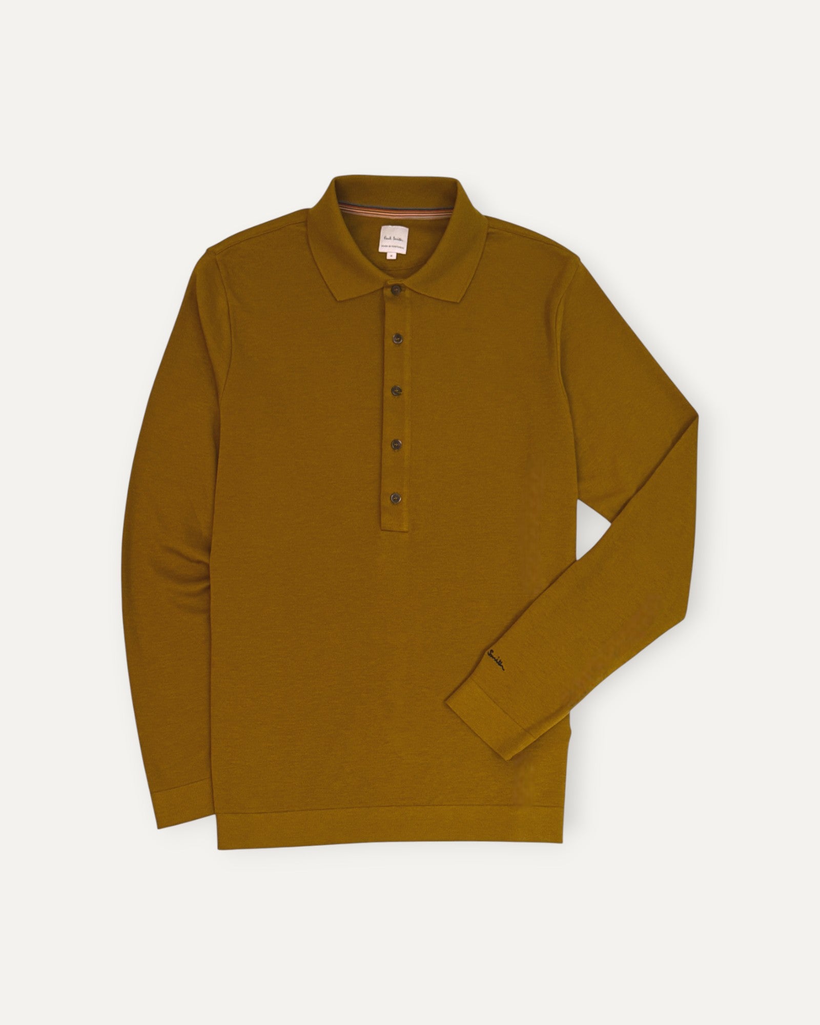 Ribbed Long Sleeved Polo Shirt Tan