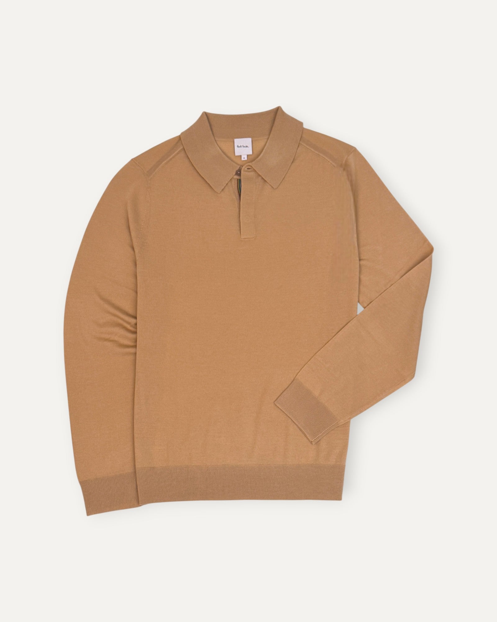 Merino Wool Long Sleeved Knitted Polo Shirt Tan