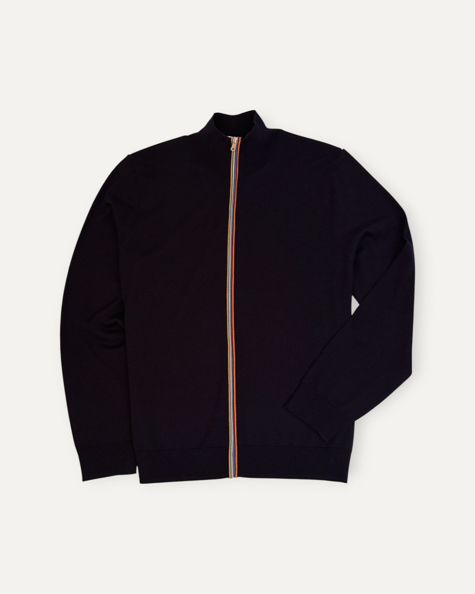 Merino Wool 'Signature Stripe' Zip Cardigan Navy