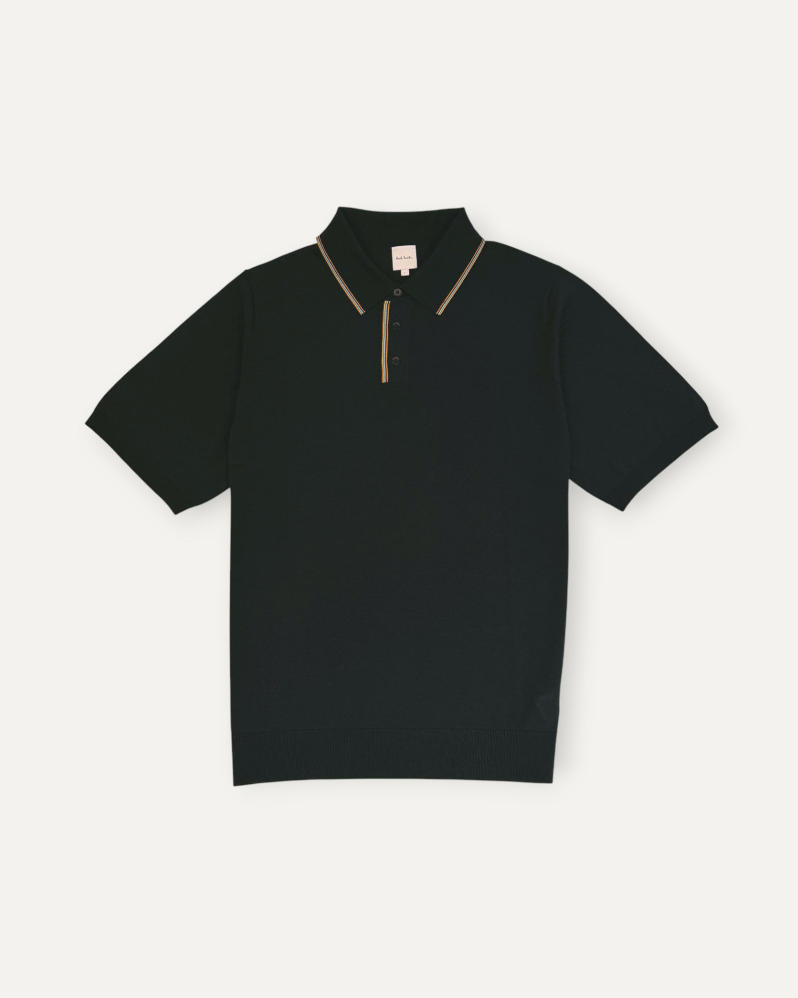 'Signature Stripe' Trim Placket Polo Shirt in Black