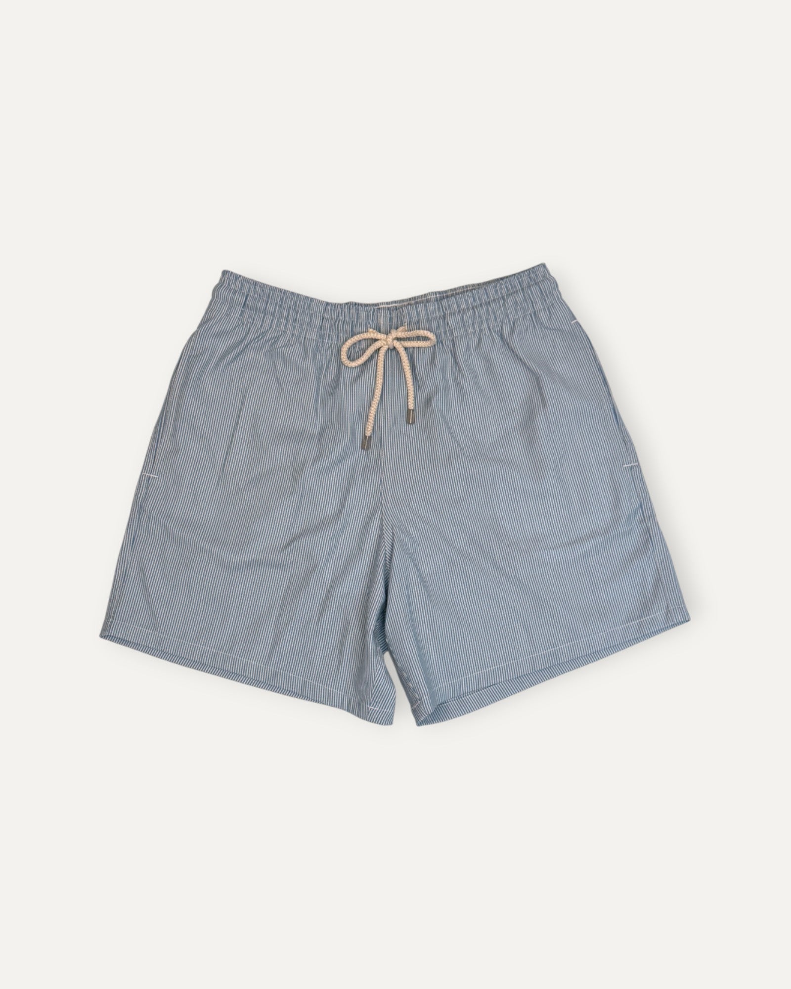 Merino Wool Micro Stripe Swimwear in Pale Blue